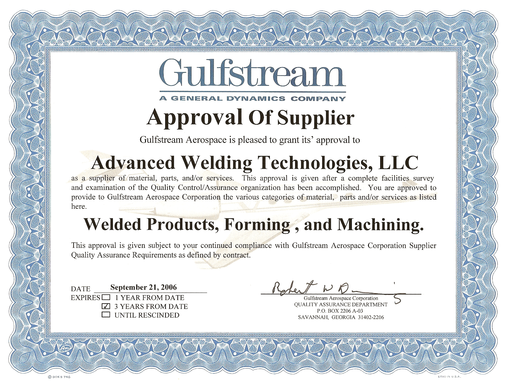 Approval and Recognition Pictures The following photos are some of the Approvals and Recognitions held by AWT. Certification Pictures can be found here.